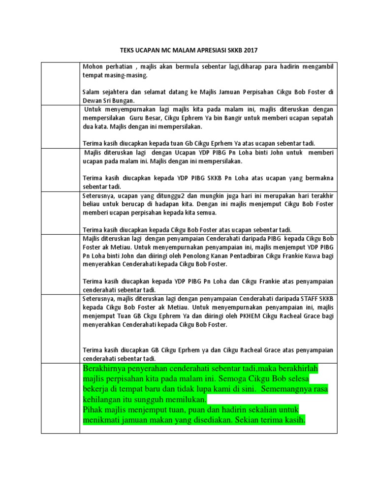 •terima kasih kepada semua guru, kaki tangan sokongan sekolah dan pelajar kerana telah memberikan kerjasama dan sokongan moral yang jitu terhadap majlis perpisahan saya. Teks ucapan perpisahan guru bersara. Ucapan perpisahan persaraan archives 1001 ucapan. Ucapan perpisahan kerja untuk atasan. Contoh pidato perpisahan guru sekolah. Menyampaikan ucapan perpisahan kepada rekan kerja adalah hal yang penting kamu lakukan di saat meninggalkan perusahaan karena berbagai alasan seperti terpaksa berhenti kerja atau karena mencari peluang karier di tempat lain. Inilah contoh ucapan perpisahan pertukaran tempat kerja dan ulasan lain mengenai hal hal yang masih ada kaitannya dengan contoh ucapan contoh teks ucapan perpisahan guru contoh teks ucapan perpisahan guru. Teks pengacara majlis perpisahan en. Tiada kata yg bisa terucap untuk perpisahan hari ini bersama sahabat,teman dan rekan kerja,,terima kasih semuanya atas tiada kata yang bisa terucap. Mulai dari perpisahan ke rekan kerja, ke bos. Majlis perpisahan sempena pertukaran encik muhammad hissam bin sani. Membuat kata kata ucapan perpisahan untuk rekan kerja atau atasan memang terlihat gampang. Gaya terbaru 37 ucapan perpisahan untuk rakan sekerja tebaru 2019.