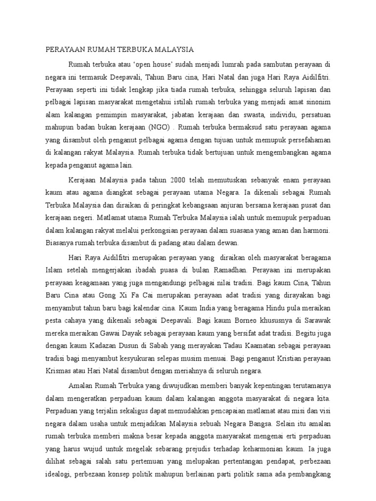 The copyright of the image is owned by the owner, this website only displays a few snippets of several keywords that are put together in a post summary. Contoh karangan spm bahagian b rumah terbuka. Dengan adanyarumah terbuka, mudahlah seseorang itu untuk mengunjungi rumah saudara mara. Laman bahasa melayu spm karangan kepetingan rumah terbuka di malaysia. Amalan rumah terbuka ini sesuatu yang unik bagi malaysia, telah mendorong menyumbang kepada keamanan dan kebaikan keadaan dalam negara kita.