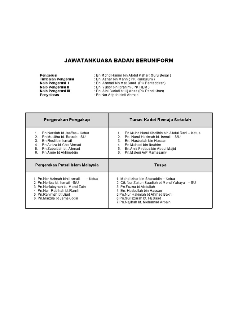This only includes people who have public search listings available on facebook. Yang berhormat tuan abu bakar bin abdullah kutty. The purpose of this study was to evaluate the role of television as an educational tool to the enhancement of farmers' knowledge. The chief of army is a member of the malaysian armed forces council and directly reports to the chief of the armed forces. 5, 1st floor, bangunan majid