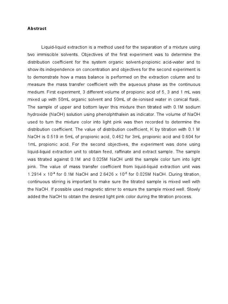 Related : Liquid Liquid Extraction Lab Report Uitm / University of each liquid extraction produces separation of the theory liquid..